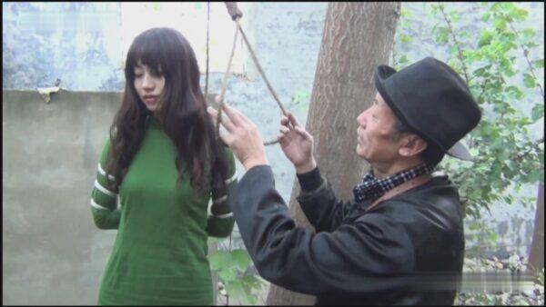チャイナドレスの女は縛られ鞭を打たれた。自白強要された後に絞首刑を受けた。
